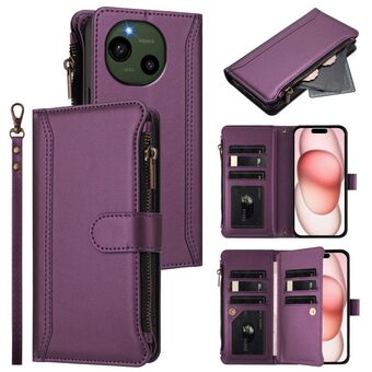 For Sharp Aquos R7 Magnetic Closure 9 Card Slots Zipper Leather Case with Hand Strap(Purple)