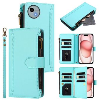 For Cubot A10 Magnetic Closure 9 Card Slots Zipper Leather Case with Hand Strap(Mint Green)