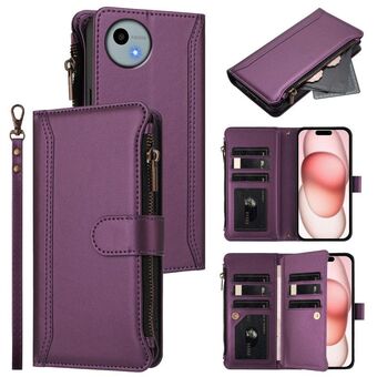For Cubot A10 Magnetic Closure 9 Card Slots Zipper Leather Case with Hand Strap(Purple)