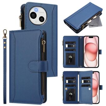 For Sharp Aquos sense9 Plus Magnetic Closure 9 Card Slots Zipper Leather Case with Hand Strap(Dark Blue)
