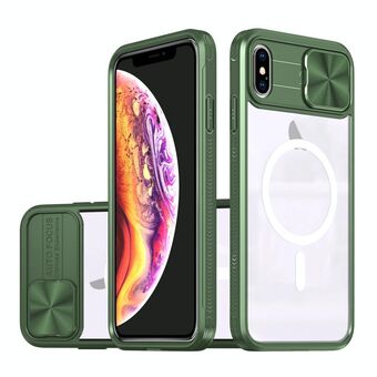 For iPhone XS Max Clear Acrylic + PC + TPU MagSafe Lens Sliding Cover Full Coverage Phone Case(Olive Green)