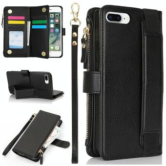 For iPhone 8 Plus / 7 Plus Wristband Holder Zipper Purse RFID Leather Phone Case(Black)