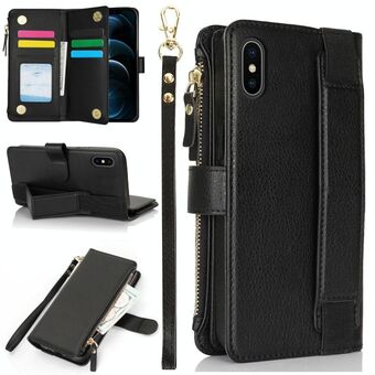For iPhone XS / X Wristband Holder Zipper Purse RFID Leather Phone Case(Black)