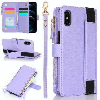 For iPhone XS / X Wristband Holder Zipper Purse RFID Leather Phone Case(Purple)