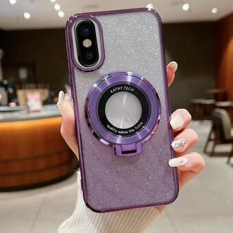 For iPhone X / XS Electroplated Holder Gradient Glitter MagSafe Phone Case(Purple)