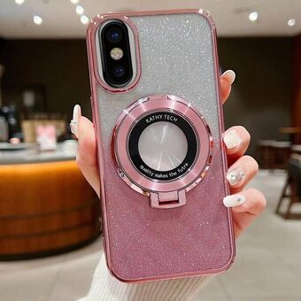 For iPhone X / XS Electroplated Holder Gradient Glitter MagSafe Phone Case(Pink)