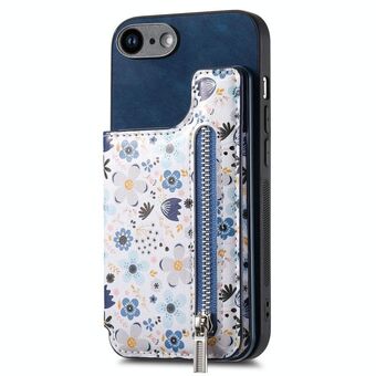 For iPhone 6 Plus / 6s Plus Retro Painted Zipper Wallet Back Phone Case(Blue)