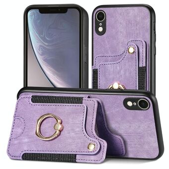 Θήκη τηλεφώνου για iPhone XR με ρετρό υφή, δακτύλιο και πολλαπλές θήκες καρτών (Μωβ)