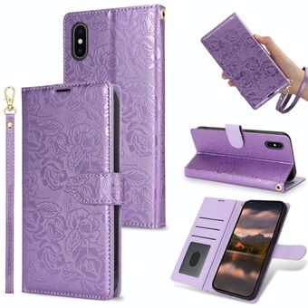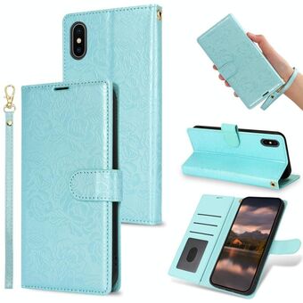 Θήκη τηλεφώνου από δέρμα με σχέδιο από παιώνιες για iPhone X / XS (Μαύρο)