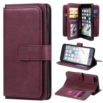 Θήκη δέρματος με οριζόντιο άνοιγμα, πολυλειτουργική, με μαγνητικό κούμπωμα από χαλκό και μονόχρωμο χρώμα, για iPhone 8 Plus & 7 Plus, με 10 υποδοχές καρτών, πορτοφόλι, βάση και κορνίζα φωτογραφιών (Κρασί)