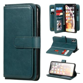 Θήκη για iPhone XS Max, πολυλειτουργική, μαγνητική, με αγκράφα από χαλκό, οριζόντια, μονόχρωμη, από δέρμα, με 10 υποδοχές για κάρτες, πορτοφόλι, βάση & κορνίζα φωτογραφιών (Σκούρο Πράσινο)