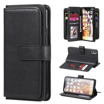 Θήκη για iPhone XR, πολυλειτουργική, μαγνητική, με αγκράφα από χαλκό, οριζόντια, μονόχρωμη, από δέρμα, με 10 θήκες για κάρτες & πορτοφόλι & βάση στήριξης & κορνίζα φωτογραφιών (Μαύρο)