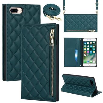 Θήκη τηλεφώνου από δέρμα με φερμουάρ και κορδόνι με υφή πλέγματος για iPhone 8 Plus / 7 Plus (Μωβ)