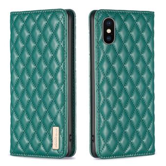 Θήκη τηλεφώνου τύπου flip από δέρμα με μαγνητικό κλείσιμο και διαμαντένιο σχέδιο πλέγματος για iPhone XS / X (Πράσινο)