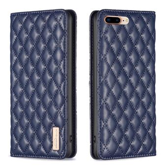 Θήκη τηλεφώνου τύπου flip από δέρμα με μαγνητικό σχέδιο διαμαντένιο πλέγμα για iPhone 8 Plus / 7 Plus (Μπλε)