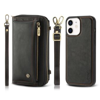 Θήκη τηλεφώνου για iPhone XR, πολυλειτουργική, δερμάτινη, με φερμουάρ και λουρί ώμου (Καφέ)