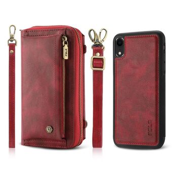 Θήκη τηλεφώνου για iPhone XR, πολυλειτουργική, δερμάτινη, με φερμουάρ και λουρί ώμου (Κόκκινη)
