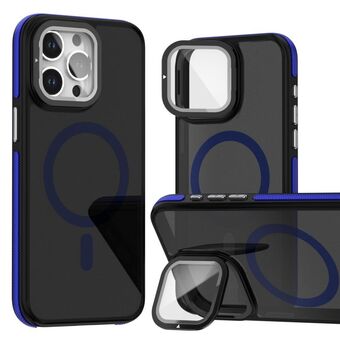 Θήκη τηλεφώνου για iPhone 14 Pro με Magsafe, Διχρωμία, Αίσθηση Δέρματος, Προστατευτική μεμβράνη φακού με πτυσσόμενη βάση φακού (Μπλε)