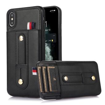 Θήκη τηλεφώνου από δέρμα με βάση στήριξης και θήκη καρτών για iPhone X / XS (Μαύρο)
