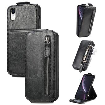 Θήκη τηλεφώνου για iPhone XR με φερμουάρ, κάθετη, δερμάτινη (Μαύρο)