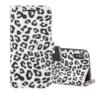 Θήκη δέρματος οριζόντιας αναδίπλωσης με σχέδιο λεοπάρδαλης για iPhone XS με βάση & θήκες καρτών (Καφέ)