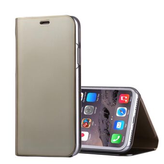 Θήκη δέρματος οριζόντιας αναδίπλωσης με καθρέφτη επιμετάλλωσης για iPhone X / XS με βάση (Χρυσό)