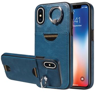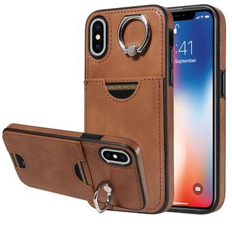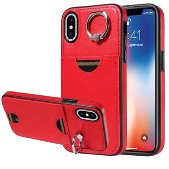 Θήκη τηλεφώνου για iPhone X / XS με υφή μοσχαριού, θήκη κάρτας και δακτύλιο στήριξης (Κόκκινο)