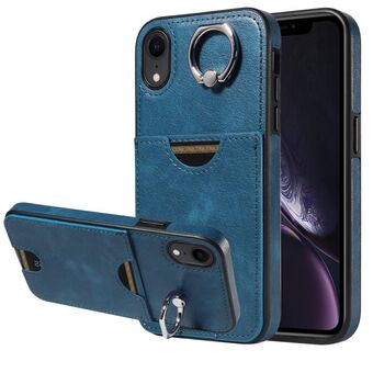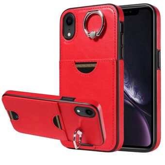 Θήκη τηλεφώνου για iPhone XR με υφή μοσχαριού, θήκη κάρτας, δακτύλιος στήριξης (Κόκκινο)