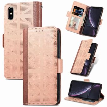Grid Leather Flip Phone Case For iPhone XS / X(Apricot)