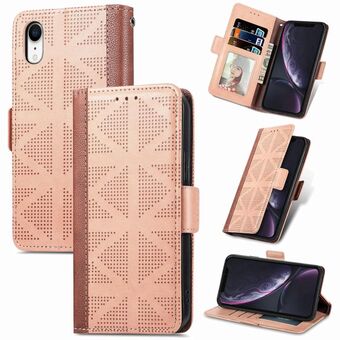 For iPhone XR Grid Leather Flip Phone Case(Apricot)