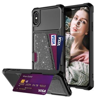 For iPhone XS Max Glitter Magnetic Card Bag Phone Case(Black)