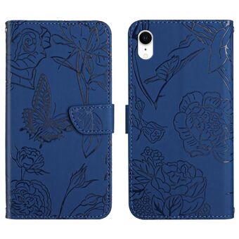 For iPhone XR Skin Feel Butterfly Peony Embossed Leather Phone Case(Blue)