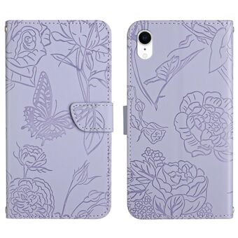 For iPhone XR Skin Feel Butterfly Peony Embossed Leather Phone Case(Purple)