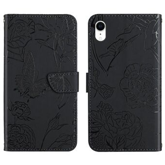 For iPhone XR Skin Feel Butterfly Peony Embossed Leather Phone Case(Black)