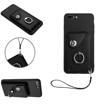For iPhone 8 Plus / 7 Plus Organ Card Bag Ring Holder PU Phone Case with Lanyard(Black)