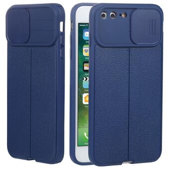Litchi Texture Sliding Camshield TPU Protective Phone Case For iPhone 8 Plus & 7 Plus(Blue)