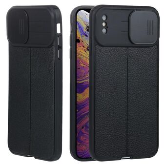 For iPhone XS Max Litchi Texture Sliding Camshield TPU Protective Phone Case(Black)