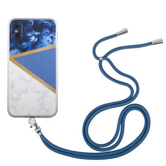 For iPhone X / XS Lanyard Stitching Marble TPU Case(Dark Blue)