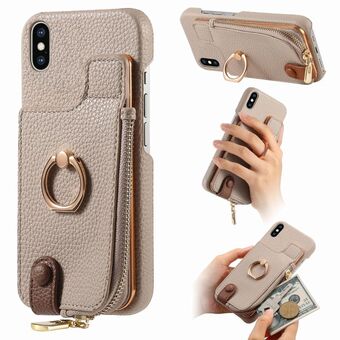 For iPhone XS Max Litchi Leather Oil Edge Ring Zipper Wallet Back Phone Case(Khaki)