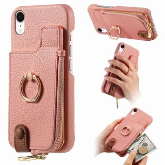For iPhone XR Litchi Leather Oil Edge Ring Zipper Wallet Back Phone Case(Pink)