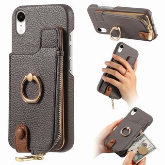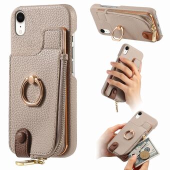 For iPhone XR Litchi Leather Oil Edge Ring Zipper Wallet Back Phone Case(Khaki)