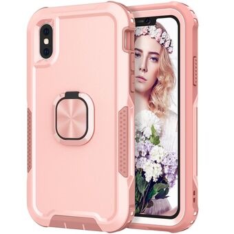 For iPhone XS Max 3 in 1 PC + TPU Phone Case with Ring Holder(Pink)