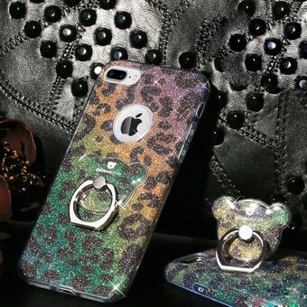 AIQAA Για iPhone 8 Plus & 7 Plus TPU Glitter Powder Drop-proof προστατευτική θήκη με θήκη δαχτυλιδιού αρκούδας (Leopard Print) (AIQAA)