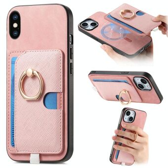 For iPhone XS Max Retro Cross Leather Ring Side Insert Card Bag MagSafe Phone Case(Pink)