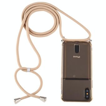 For iPhone X / XS Transparent TPU Protective Case with Lanyard & Card Slot(Gold)