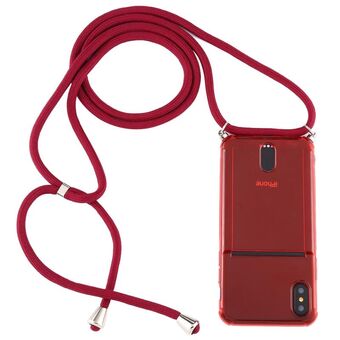 For iPhone X / XS Transparent TPU Protective Case with Lanyard & Card Slot(Red)