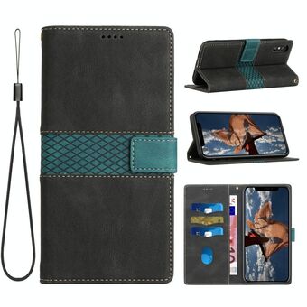 For iPhone XS / X Grid Stitching Leather Phone Case with Lanyard(Black)
