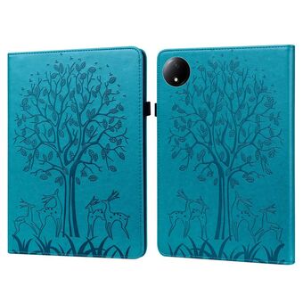 Για Xiaomi Redmi Pad SE 8.7 δέντρο & ελάφι ανάγλυφη δερμάτινη θήκη tablet (μπλε)