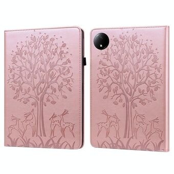 Για Xiaomi Redmi Pad SE 8.7 δέντρο & ελάφι ανάγλυφη δερμάτινη θήκη tablet (ροζ)