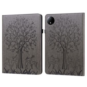 Για Xiaomi Redmi Pad SE 8.7 δέντρο & ελάφι ανάγλυφη δερμάτινη θήκη tablet (γκρι)